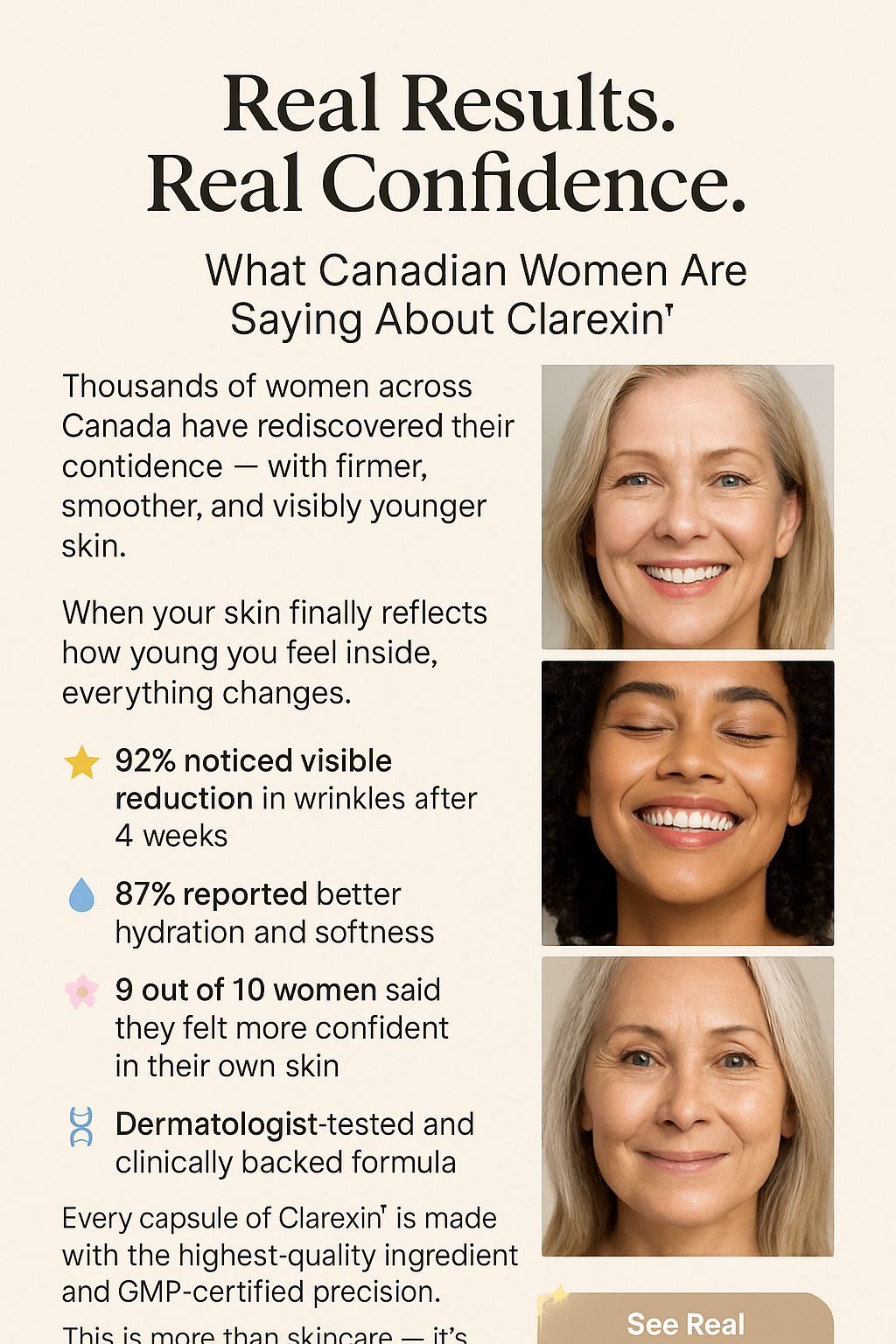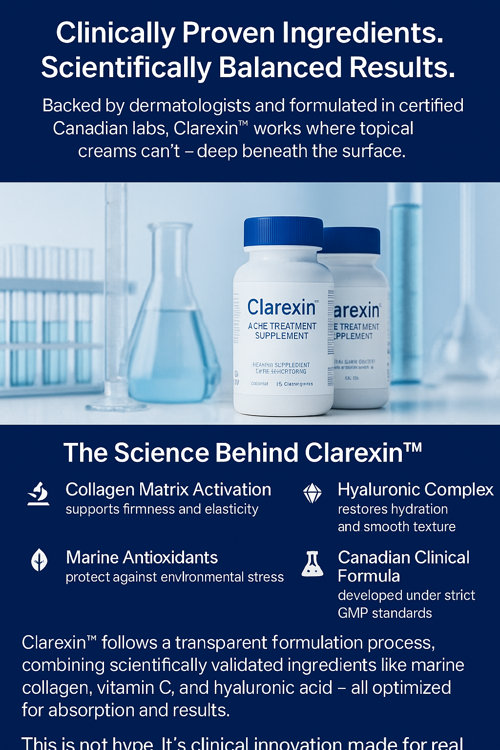 After years of research, Canadian scientists have developed Clarexin™ — a clinically tested formula that helps your skin rebuild collagen naturally.