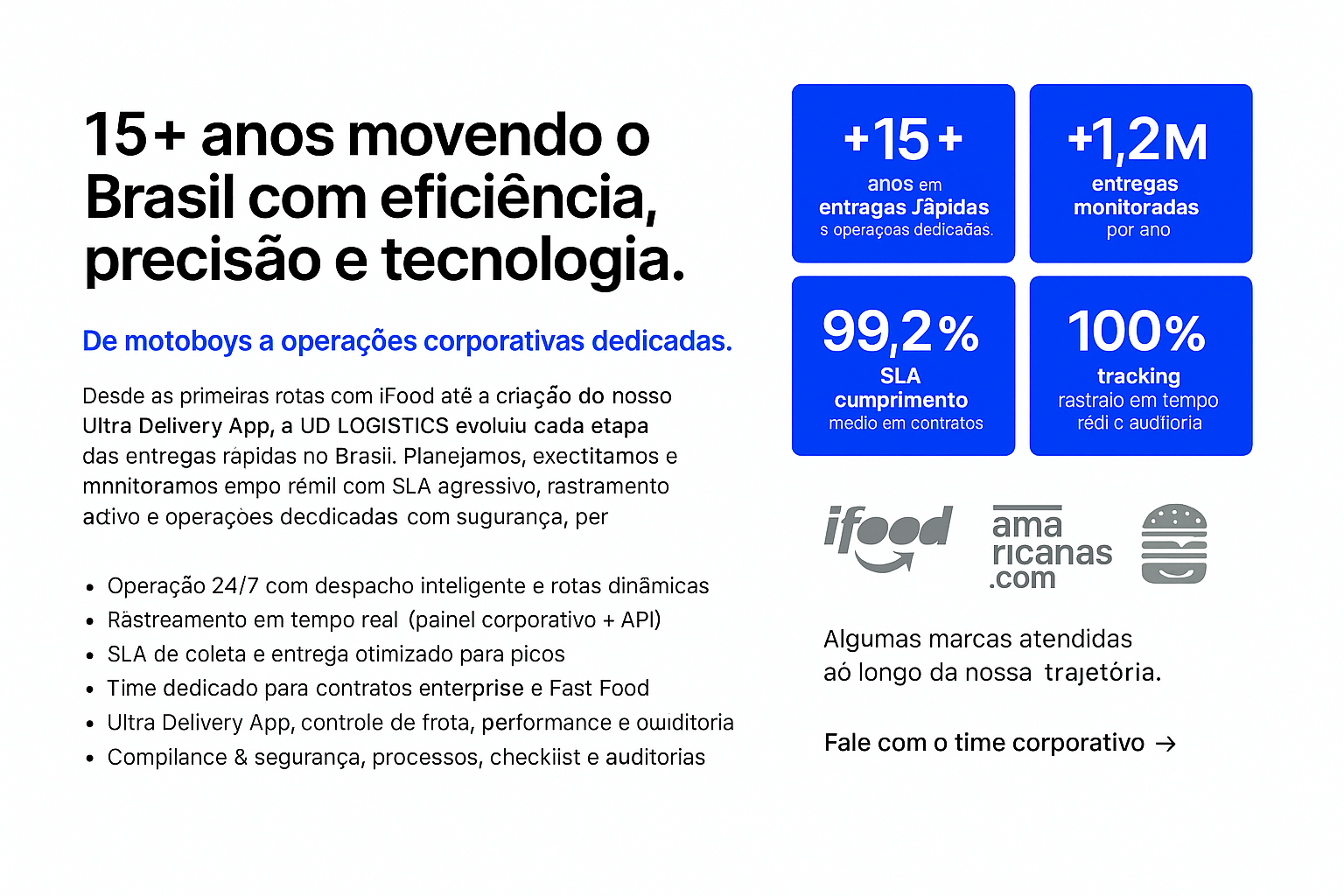 Atuamos lado a lado com empresas de e-commerce, alimentação, varejo e tecnologia, oferecendo entregas rápidas, operações exclusivas e suporte humano 24/7.